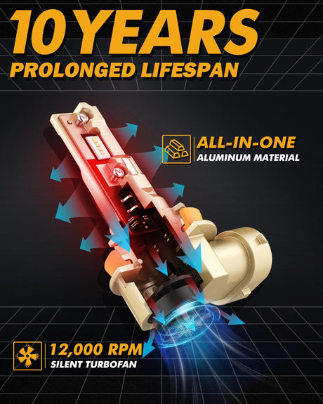H11 LED Headlight Bulbs 72W 10000LM S3 Series Fan Cooling 6500K Cool White | 2 Bulbs