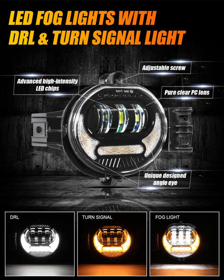 (2pcs/set) DOT Approved LED Fog Lights with DRL for 2013-2018 Dodge Ram 1500