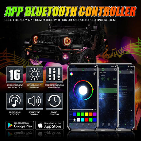 New 1.9FT LED RGB Whip Lights with Turn Signal & Brake Light, Bluetooth APP/ Remote Control