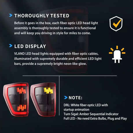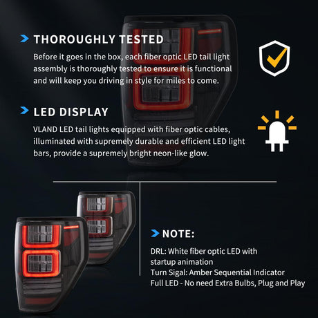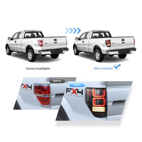 LED Tail Lights Assembly With Sequential Turn Signal For 2009-2014 Ford F150 12th Gen (P415)