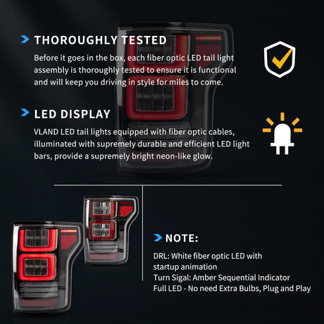 LED Tail Lights Assembly With Sequential Turn Signal For 2015-2020 Ford F150 13th Gen (P552)