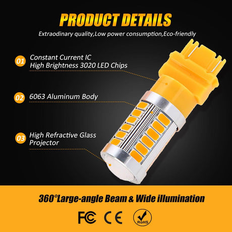 T25 3157 3156 LED Brake/Tail Light Bulbs 20W 4000LM Red 33LED Series | 2 Bulbs