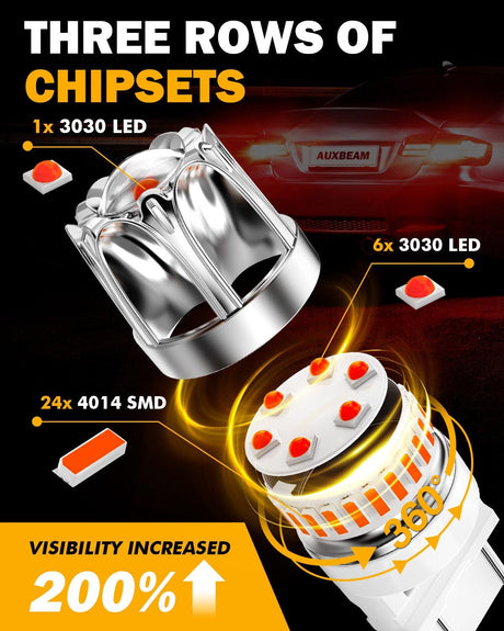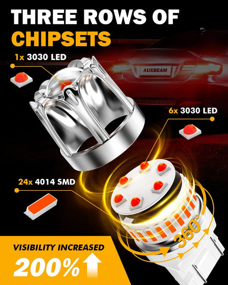 T20 7443 7440 LED Brake/Tail Light Bulbs 11W 4000LM Red B1 Series | 2 Bulbs