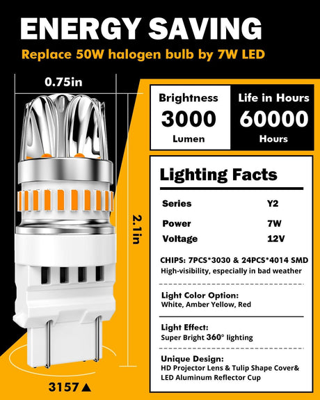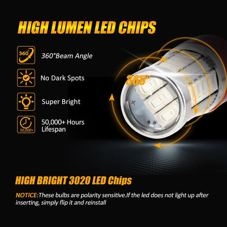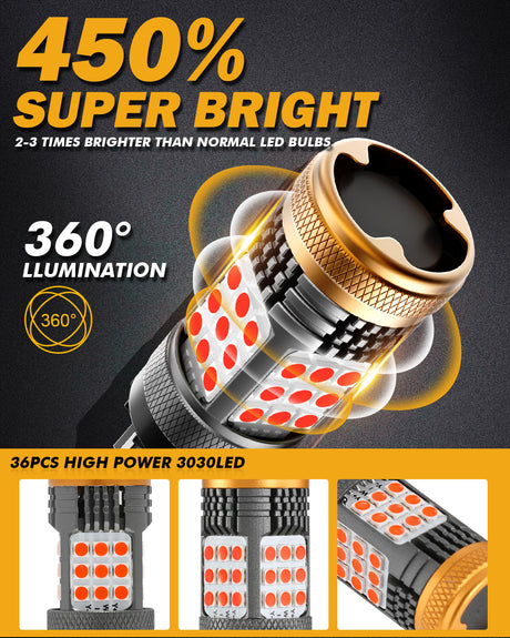 T25 3157 3156 LED Brake/Tail Light Bulbs 14W 6000LM CAN-Bus Error Free Red Y2 Series | 2 Bulbs