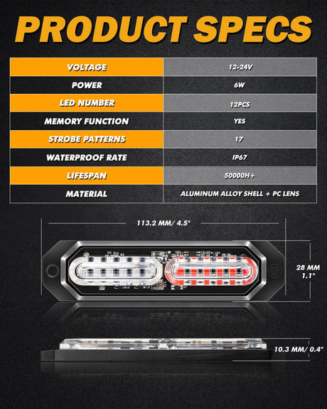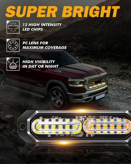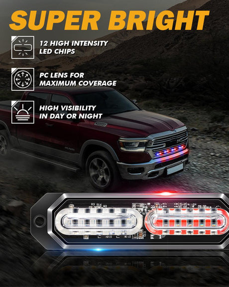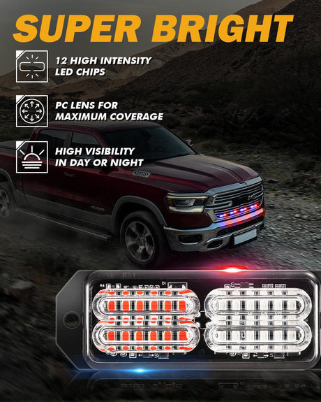 (4PSC/SET) 12LED Emergency Surface Mount Grill Strobe Light for Trucks Vehicles ATV RV Cars Van