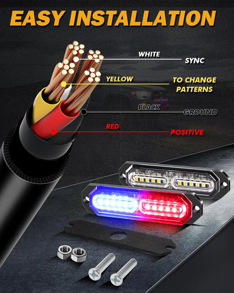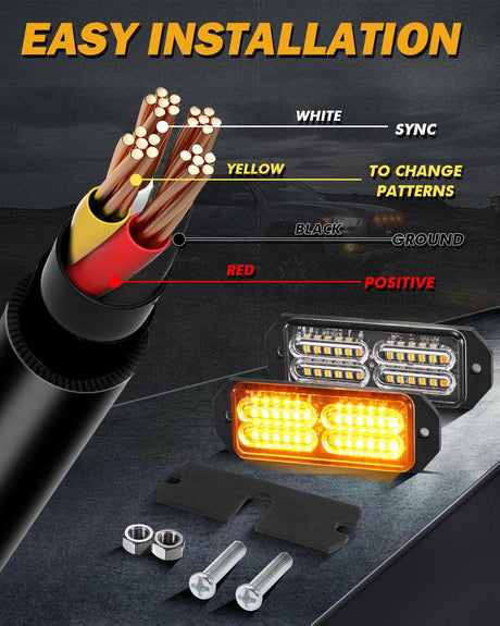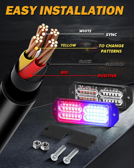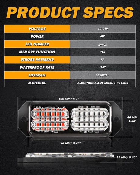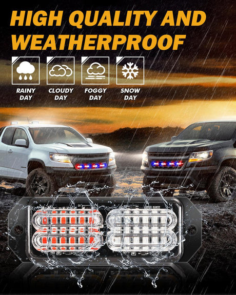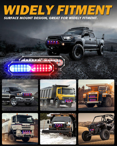 (4PSC/SET) 24LED Emergency Surface Mount Grill Strobe Light for Trucks Vehicles ATV RV Cars Van