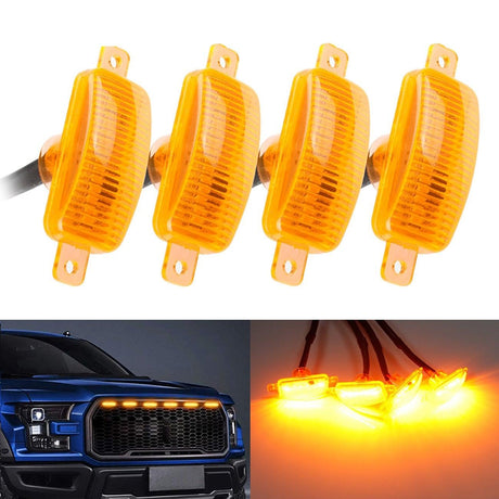 (5pcs/set) LED Front Grille Lights Raptor Style Amber Light Universal Car Modification