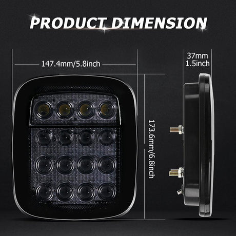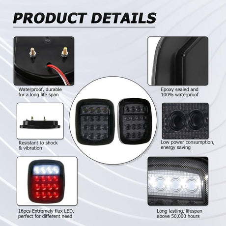(2pcs/set) Universal Tail Lights 16LEDs for Jeep Wrangler YJ TJ CJ Truck Trailer Boat (Smoked)