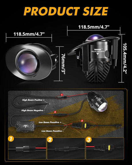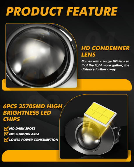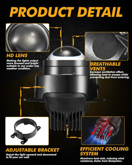 2 Inch 70W Bi-LED Projector Lens Fog Light 6000K HD Lens For Toyota/Honda | 2 Pcs/Set