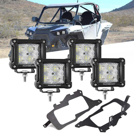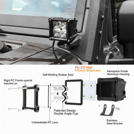 3 Inch Spot/Flood Beam LED Pods Light + Universal LED Working Lights Mounting Brackets