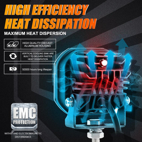 3 Inch 80W 9600LM LED Pods Lights White&Amber for ATV UTV SIDE BY SIDE 4X4