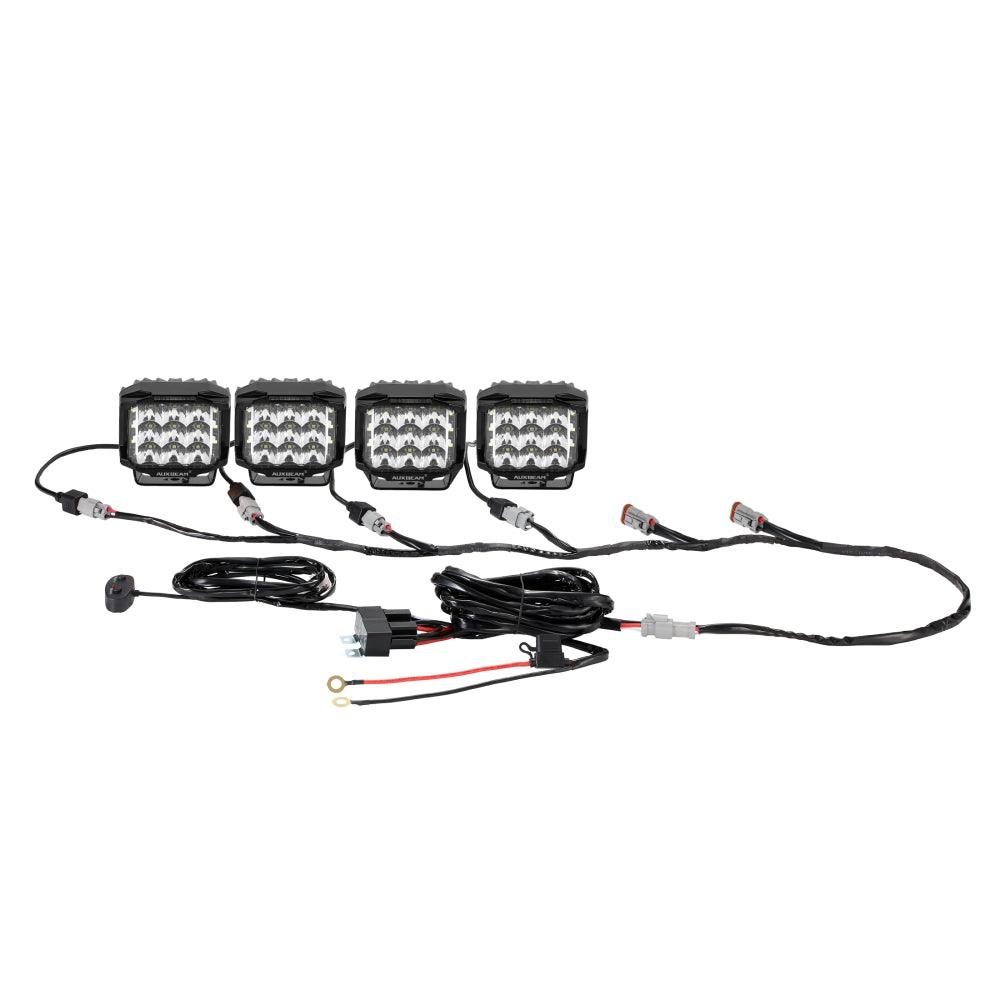 Compatible: The wiring harness of the LED Pod Light is suitable for three-wire Main Light+DRL mode, and also includes the 6 in 1 3PIN DT Plug, 40A fuse and relays. Built-in blade fuse to prevent overcurrent and short circuit to ensure the safety of the vehicle electrical system.