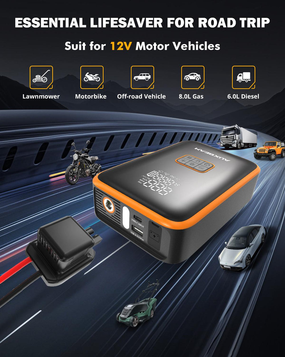 - Peak Current: Up to 3000A, suitable for most vehicles including cars, SUVs, and small trucks.