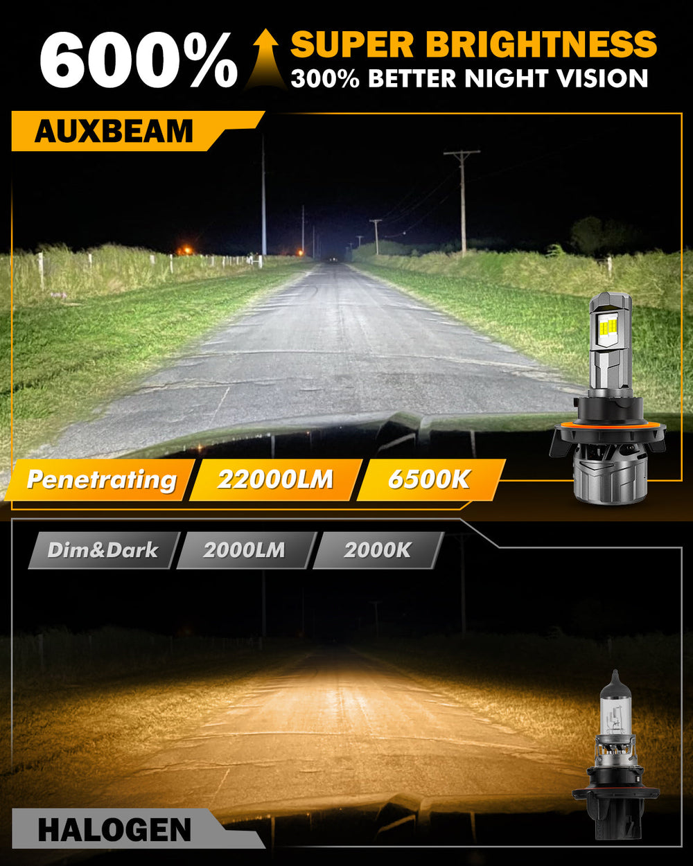 • Equipped with double-sided 7535CSP LED chips with 600% brighter than halogen bulbs, irradiation distance up to 22000FT.