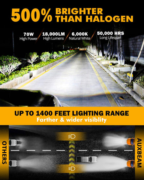 H13 LED Headlight Bulbs 70W 18000LM F-16 Plus Series Brightest 6000K Cool White | 2 Bulbs