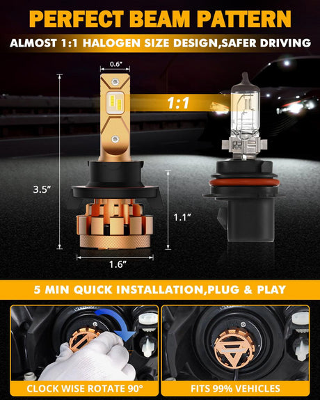 H13 LED Headlight Bulbs 52W 10000LM F2 Series Mini Size 6500K Cool White | 2 Bulbs