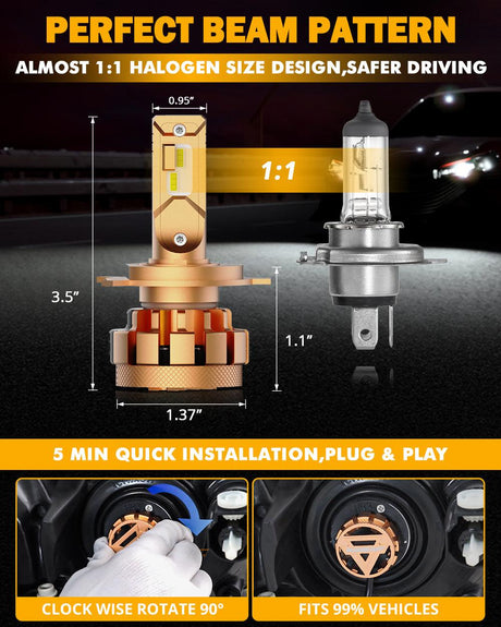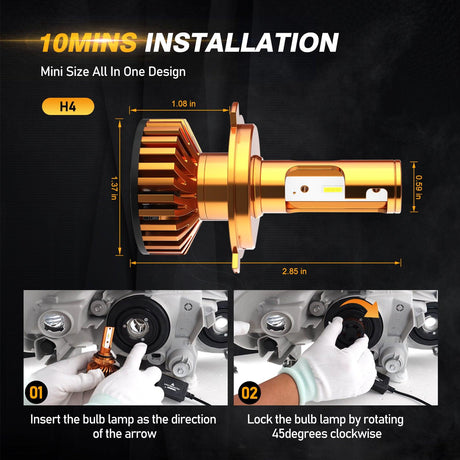 H4/9003 LED Headlight Bulbs 52W 10000LM F2 Series Mini Size 6500K Cool White | 2 Bulbs