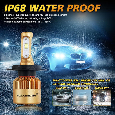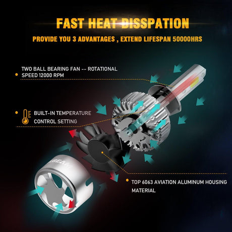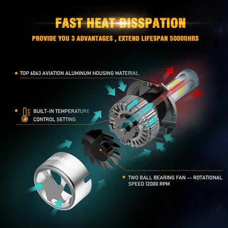H4/9003 LED Headlight Bulbs 72W 10000LM S3 Series Fan Cooling 6500K Cool White | 2 Bulbs