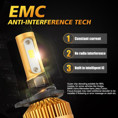H7 LED Light Bulbs Z6 Series Fanless 300% Brighter 6500K White Light