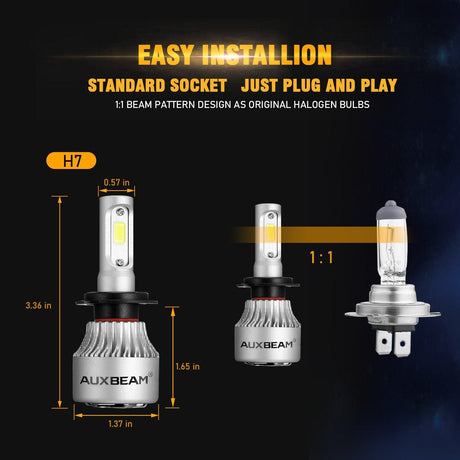 H7 LED Headlight Bulbs 72W 8000ML S2 Series Super Brightes COB 6500K Cool White | 2 Bulbs