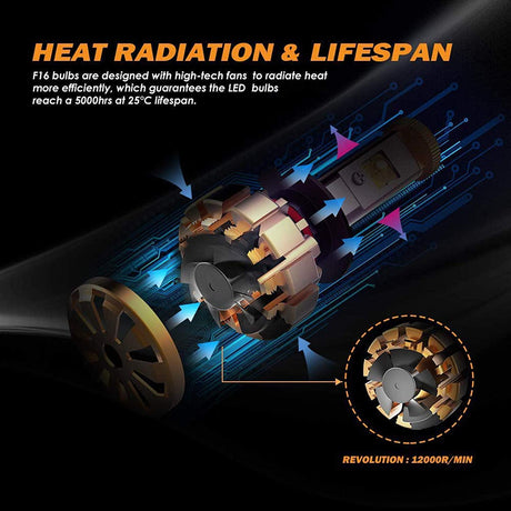 H11 LED Headlight Bulbs 70W 18000LM F-16 Plus Series Brightest 6000K Cool White | 2 Bulbs