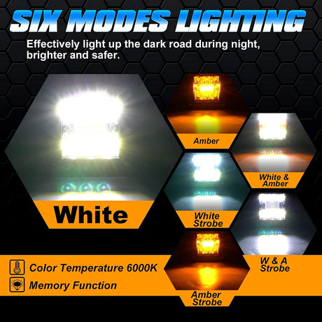 (2pcs/set) 3 inch 72W 6 Modes White&Amber LED Working Light for SUV ATV UTV Trucks Pickup Boat