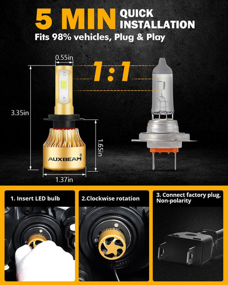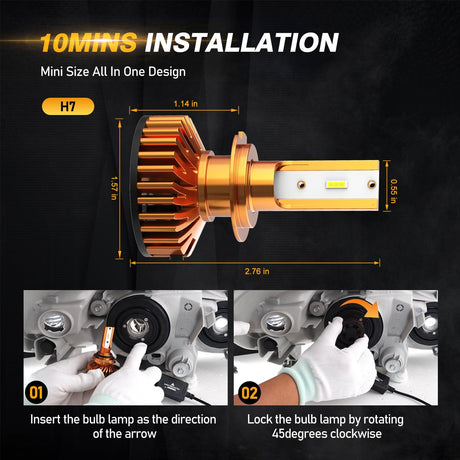 H7 LED Headlight Bulbs 52W 10000LM F2 Series Mini Size 6500K Cool White | 2 Bulbs