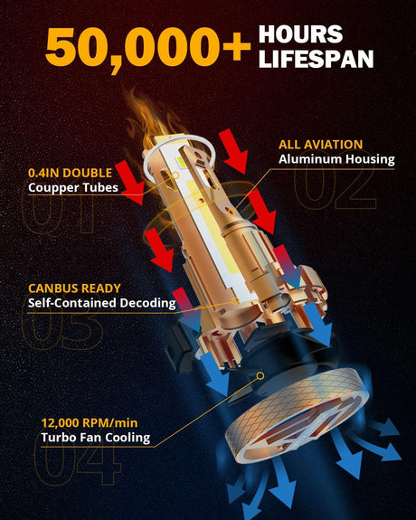 9006/HB4 LED Headlight Bulbs 72W 10000LM S3 Series Fan Cooling 6500K Cool White | 2 Bulbs