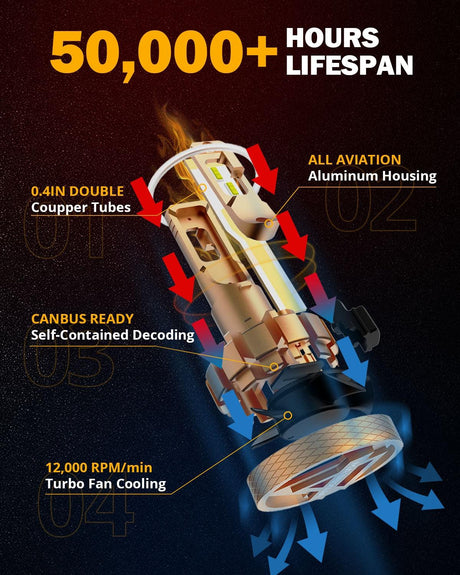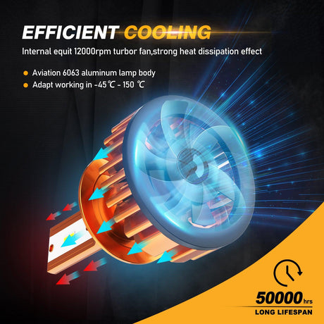 H11 LED Headlight Bulbs 72W 10000LM S3 Series Fan Cooling 6500K Cool White | 2 Bulbs