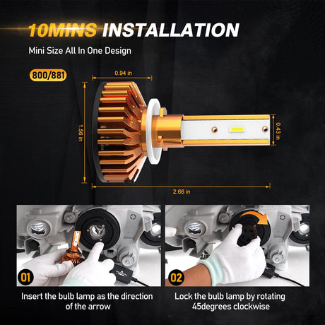 880/881 LED Headlight Bulbs 52W 10000LM F2 Series Mini Size 6500K Cool White | 2 Bulbs