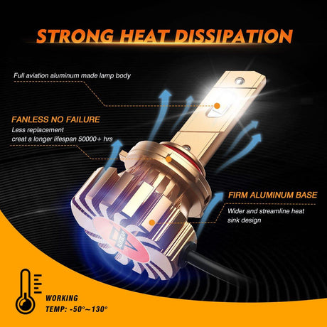 9005+9006 LED Headlight Bulbs 44W 4000LM X60 Series Fanless 6500K Cool White | 4 Bulbs