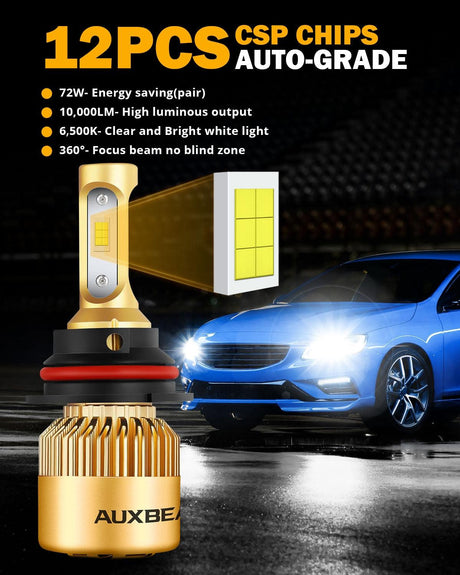 9007/HB5 LED Headlight Bulbs 72W 8000ML S2 Series Super Brightes COB 6500K Cool White | 2 Bulbs