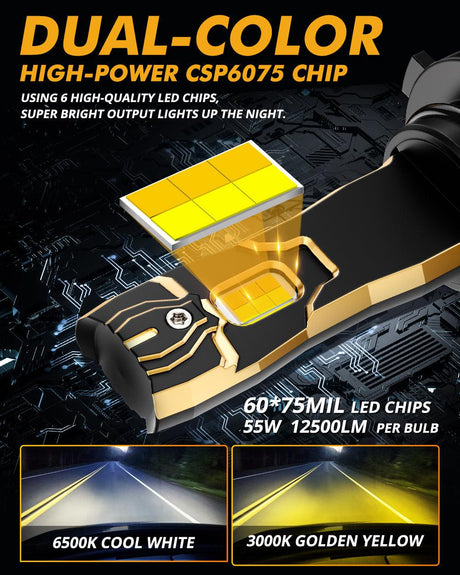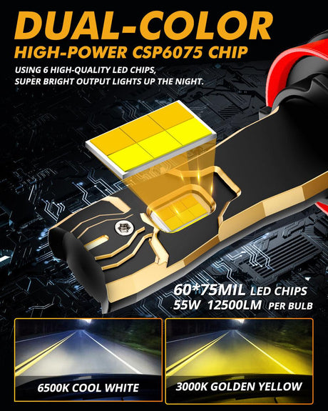 High Power & Brightness GX Bi-Color Series 25000LM 110W LED Headlight Bulbs Dual Color Switchback