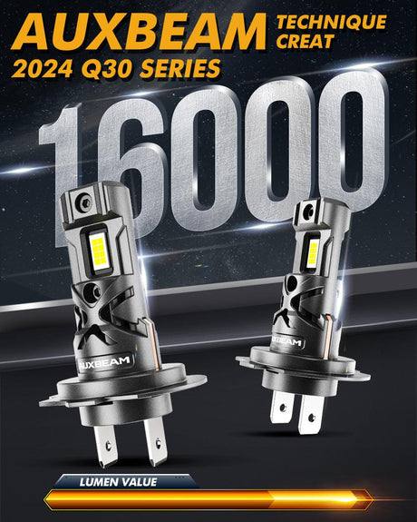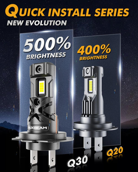 H7 LED Headlight Bulbs Q30 Series Brightest Wireless 60W 16000LM 6500K Cool White | 2 Bulbs