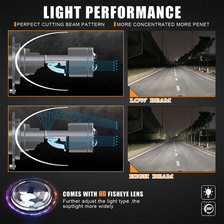H4 LED Headlight Bulbs 110W 10000LM Mini Bi-LED Projector Lens Headlight 6000K Cool White | 2 Bulbs