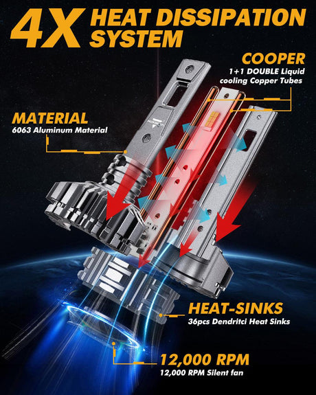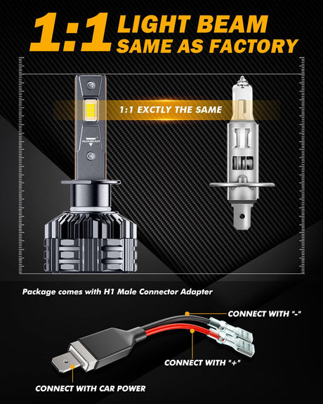 H1 LED Headlight Bulbs 110W 24000LM F22 Series High Brightness 6500K Cool White | 2 Bulbs