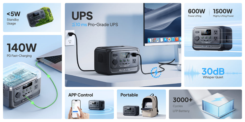 The BLUETTI EB3A is the ultimate ultra-portable energy solution for "crazy campers," off-grid explorers, and emergency preparedness. Weighing only 10.1 lbs (4.6kg), this compact powerhouse delivers a 600W continuous AC output and features a 1500W Power Lifting mode, allowing it to run high-wattage heating devices that typical small power stations can't handle.