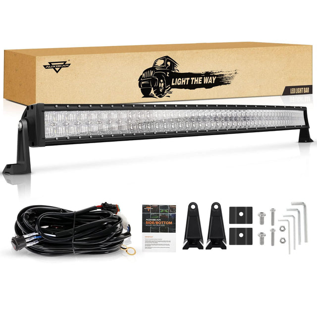 Perfect Performance: Auxbeam 50 inch curved LED light bar is made of 96pcs*3W intense LED chips. With the 28800LM 6500K cool white light, night vision will be clearer and wider. Innovative 5D optical design (fisheye lens + reflector), project light to extremely long distances in the dark, and maintain bright surround lighting at close distances.