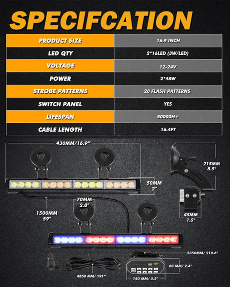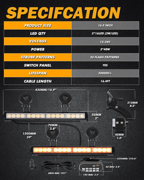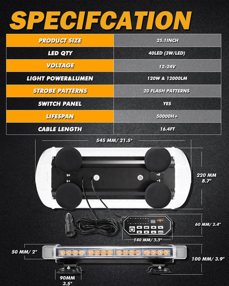 6 Modes Series 42 Inch White&Amber Straight Off Road Led Light Bar