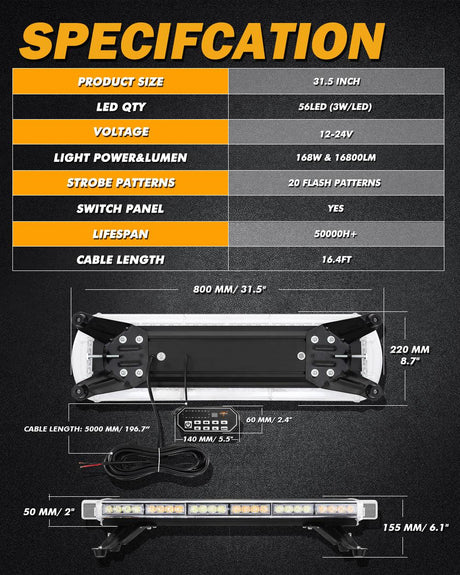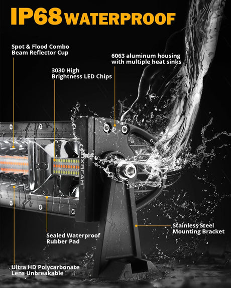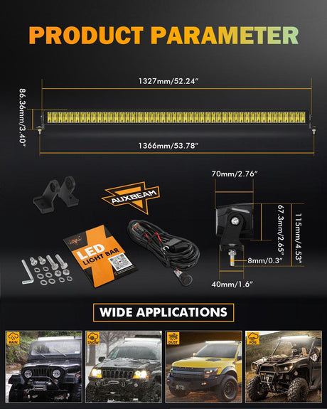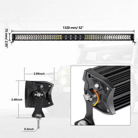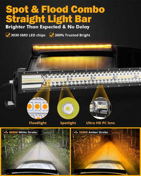 50 Inch 6 Modes White&Amber Straight Off Road Led Light Bar