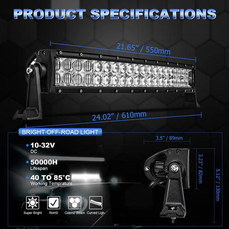 5D Series 22 Inch Combo Beam Dual Row Curved Off Road LED Light Bar