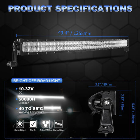 5D Series 50 Inch Combo Beam Dual Row Curved Off Road LED Light Bar