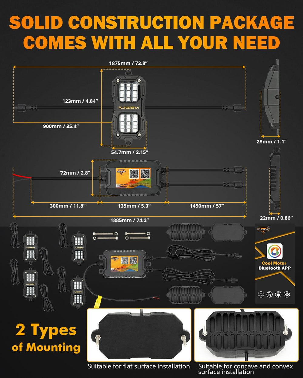 NEW Vibrant Series | 6PCS RGB LED Rock Lights Kit Multicolor Neon Underglow Lights with Bluetooth APP & Remote Control - Large is backordered and will ship as soon as it is back in stock.