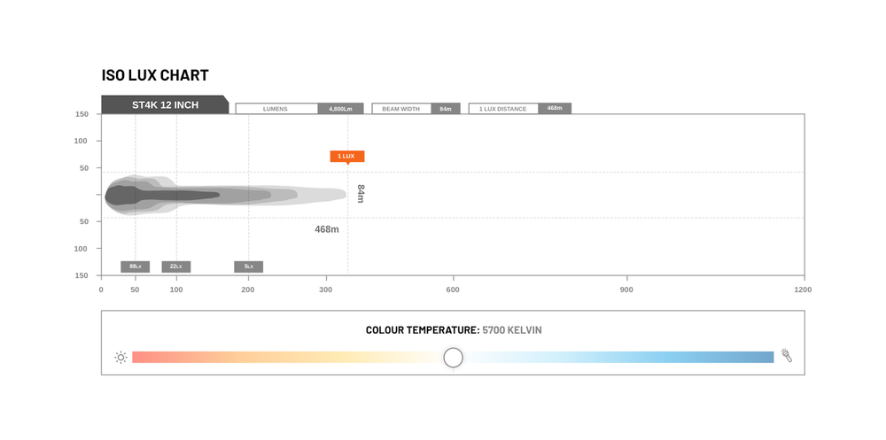• 4 Flood + 4 Spot + 4 Flood reflector distribution forms a remarkable beam that pushes the wide beam out at 50° and spot beam at 5.8° all the way to staggering 1 lux @ 363m.