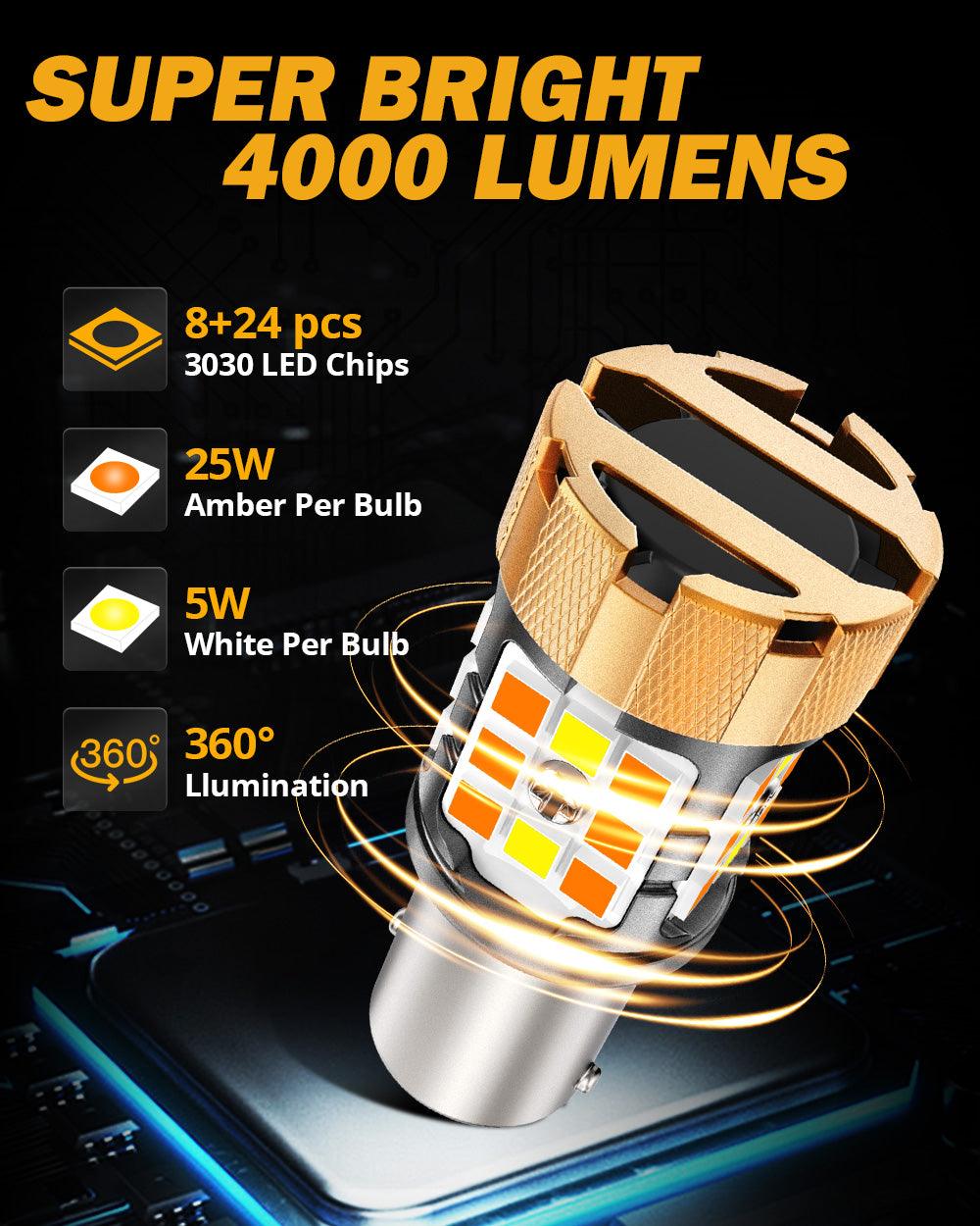 🆕 1157 BAY15D LED Front Turn Signal & DRL Light Bulbs 50W 4000LM CAN-Bus Error Free Dual Color Switchback White & Amber B21 Series | 2 Bulbs