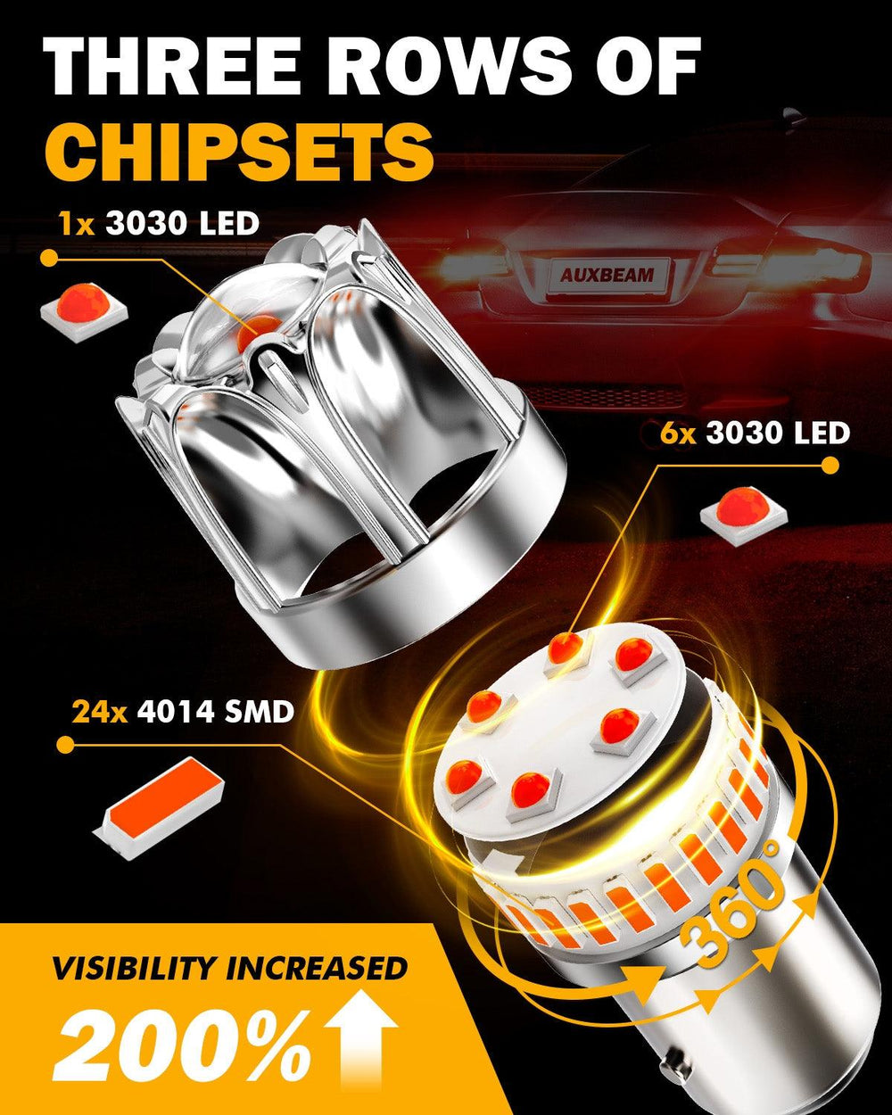 600% BRIGHTER THAN HALOGEN BULBS- 7 pieces of customized 3030 chips + 24 high light output 4014-SMD chips, 360-degree illumination.