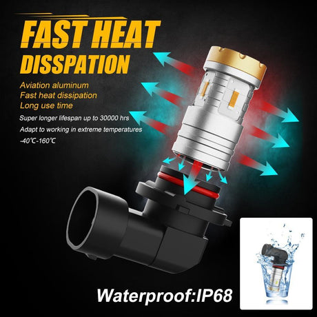 9006 LED Headlight Bulbs 70W 18000LM F-16 Plus Series Brightest 6000K Cool White | 2 Bulbs