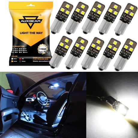 168 2825 W5W T10 LED Interior Light Bulbs 1.5W 300% Brighter 6500K White | 10 Bulbs
