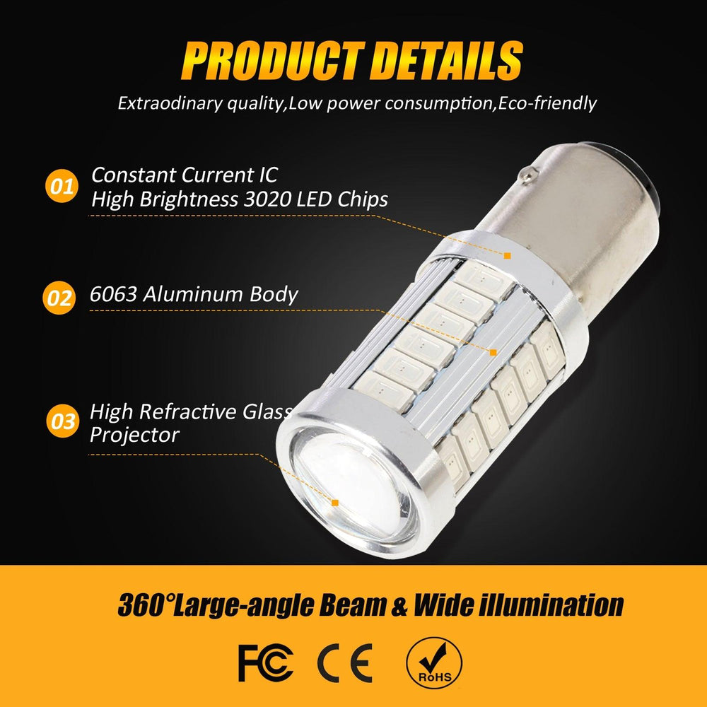 1157 BAY15D LED Brake/Tail Light Bulbs 20W 4000LM Red 33LED Series | 2 Bulbs