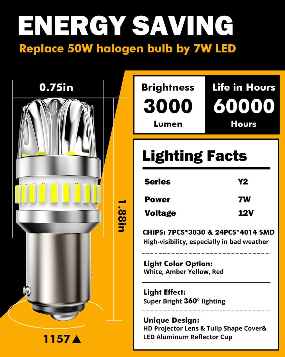 1157 BAY15D LED Backup Reverse/Turn Signal/Brake Tail Light Bulbs 14W 6000LM CAN-Bus Error Free 6500K White Y2 Series | 2 Bulbs